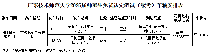 四、学校为东校区考生安排交通车往返白云校区参加考试,车辆安排如下: