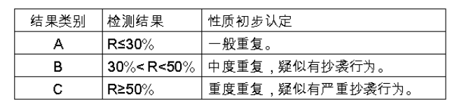 R为文字复制比,是指被检测论文与非本人学术成果的文字重合字数占全文的百分比。检测结果仅作为判断参考依据,是否构成抄袭由二级学院毕业论文工作领导小组给出最终结论。